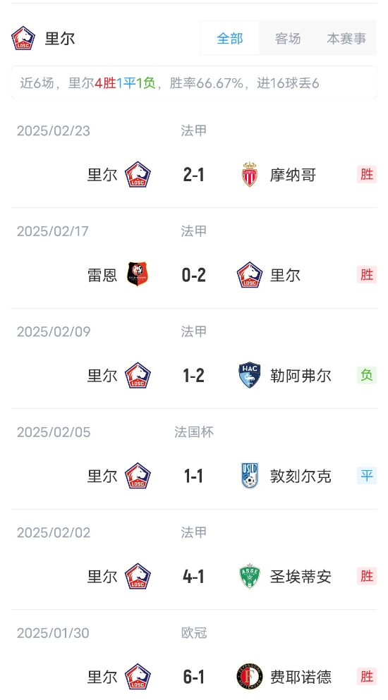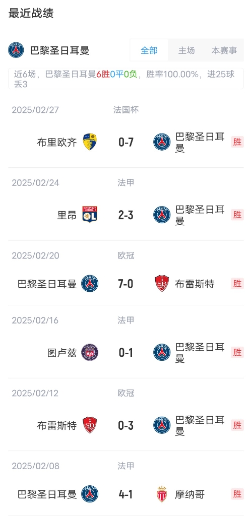 ??2025年03月02日 意甲-弗洛里安-托萬破門制勝 烏迪內(nèi)斯1-0帕爾馬取聯(lián)賽3連勝 ??2025年03月02日 西甲-馬競1-0畢巴先賽暫登頂 阿爾瓦雷斯制勝&3場4球畢巴三度中框 ??2025年03月02日 法甲-阿尤&索瑪爾傳射哈桑補時破門 勒阿弗爾4-3逆轉(zhuǎn)絕殺朗斯 ??2025年03月02日 法甲-羅薩里奧破門古埃桑德建功 尼斯客場3-1圣埃蒂安聯(lián)賽4連勝 ??2025年03月02日 法甲-巴黎4-1里爾豪取10連勝暫16分領跑 登貝萊、杜埃傳射建功 ??2025年03月02日 2連勝&22輪不敗!勒沃庫森4-1法蘭克福距榜首8分 藥廠4人破門 ??2025年03月02日 西甲-盧克巴基奧扳平 塞維利亞1-1巴列卡諾 ??2025年03月02日 足總杯-曼城3-1逆轉(zhuǎn)普利茅斯晉級八強 奧賴利雙響德布勞內(nèi)傳射 ??2025年03月02日 足總杯-埃瓦尼爾森破門 伯恩茅斯點球大戰(zhàn)6-5狼隊 ??2025年03月02日 德甲-哈維-西蒙斯閃擊 萊比錫1-2不敵美因茨 ??2025年03月02日 德甲-比紹夫破門制勝 霍芬海姆1-0小勝波鴻 ??2025年03月02日 德甲-哈克雙響恩古穆建功 門興客場3-0海登海姆 ??2025年03月02日 德甲-維默爾梅開二度 沃爾夫斯堡2-1不萊梅 ??2025年03月02日 掉至第3!皇馬1-2遭貝蒂斯逆轉(zhuǎn)5輪僅1勝 伊斯科傳射呂迪格送點 ??2025年03月02日 天王山戰(zhàn)平!國米1-1那不勒斯1分領跑 迪馬爾科任意球世界波&傷退