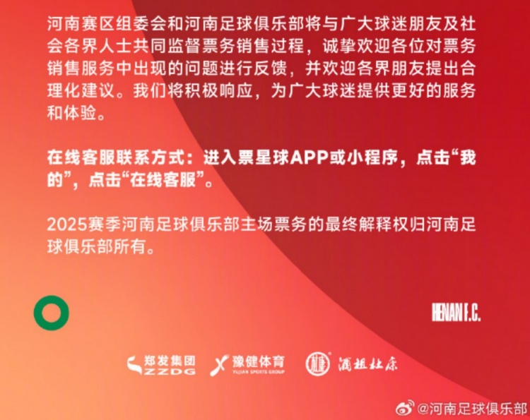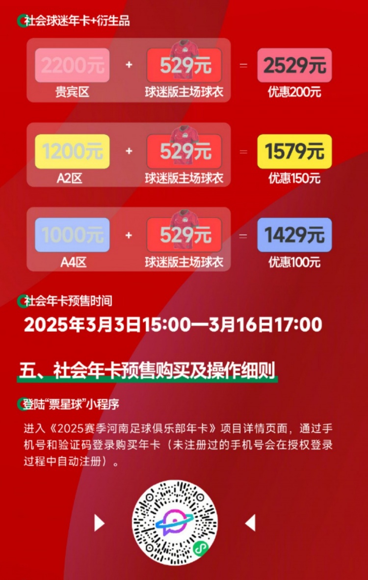 2025賽季河南足球俱樂部年卡預(yù)售公告
