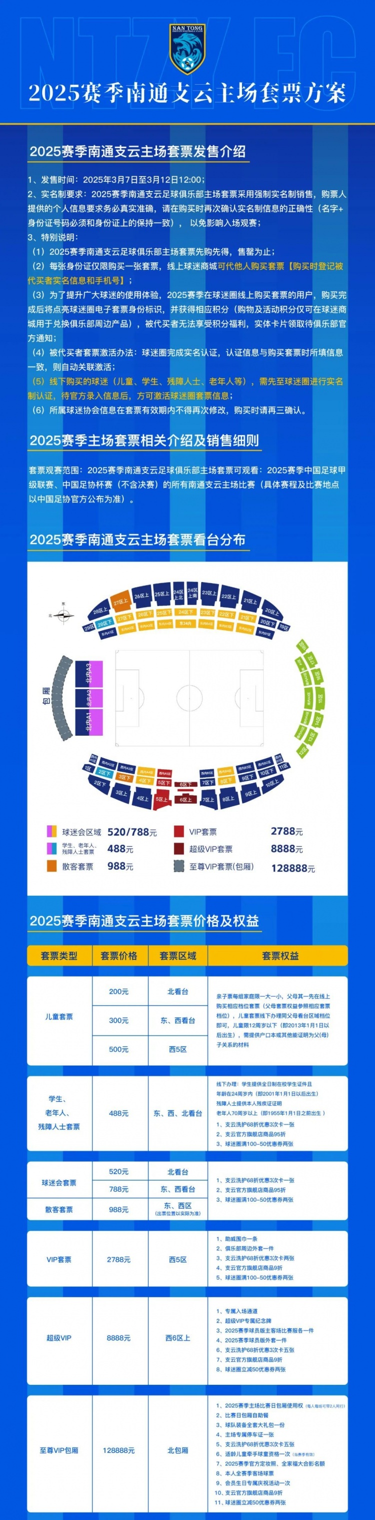 ?即日起,2025賽季南通支云足球俱樂部主場套票正式發(fā)售,具體方案如下: