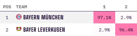 拜仁:97.1%;勒沃庫森:2.9%