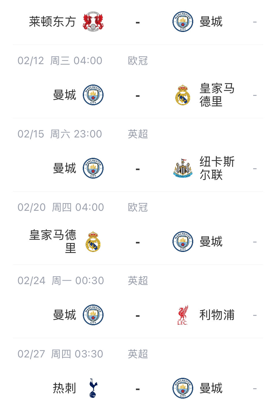 大的在后面?曼城魔鬼賽程才剛開始,后面需2戰(zhàn)皇馬+戰(zhàn)利物浦熱刺