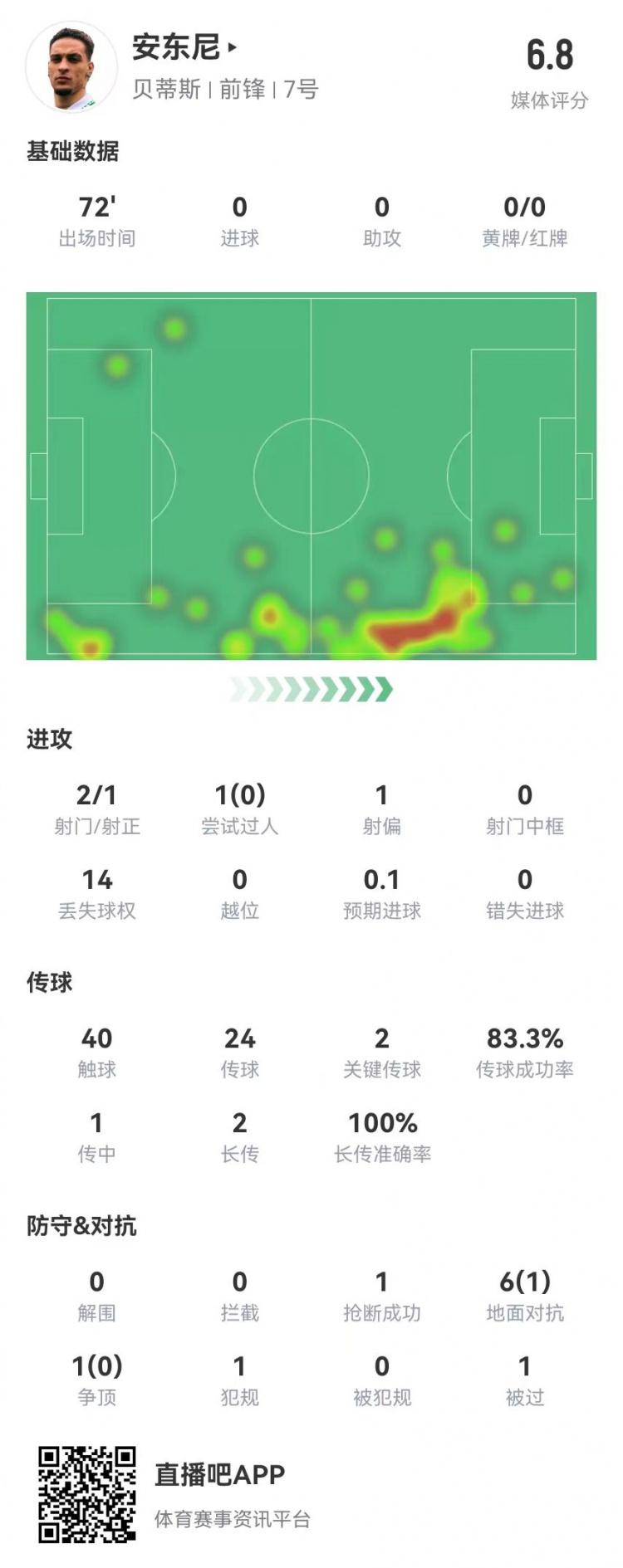 安東尼全場(chǎng)數(shù)據(jù):