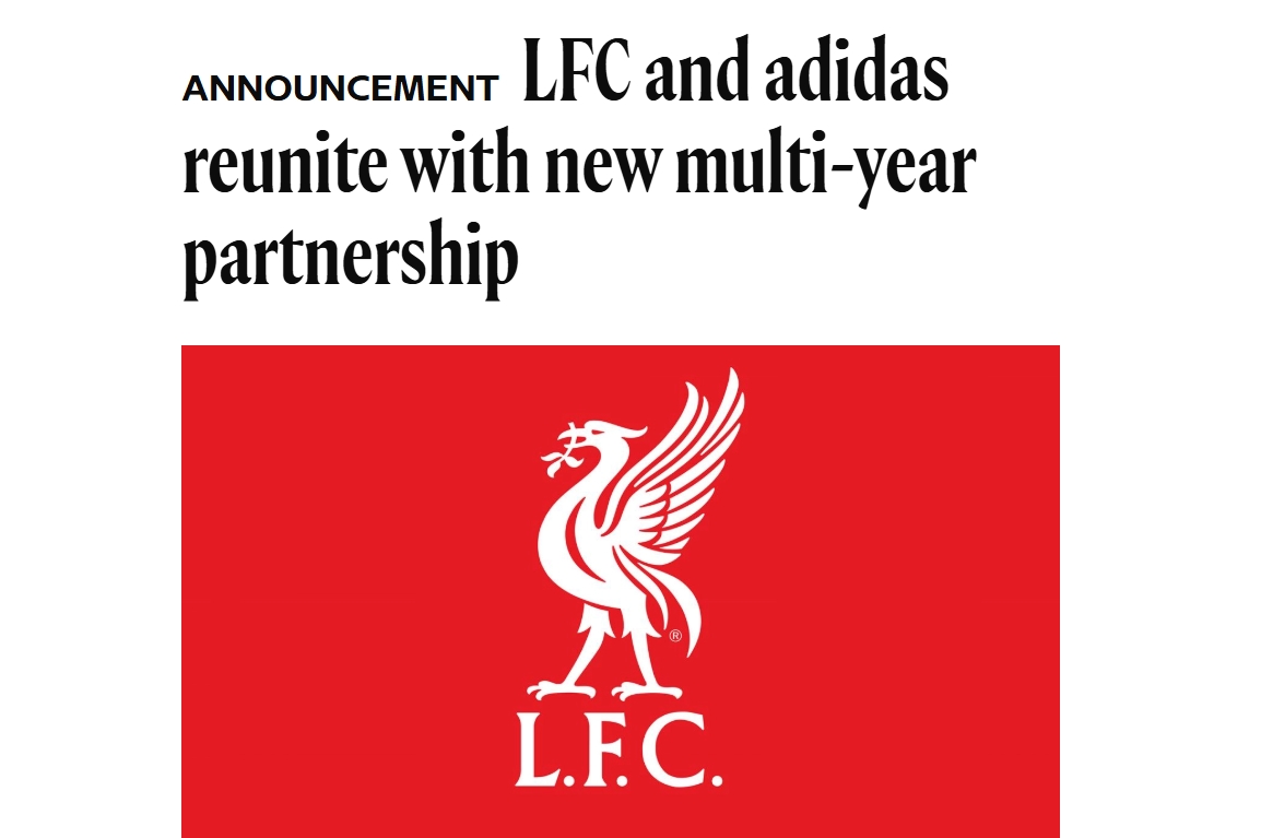 每年贊助7000萬(wàn)鎊!官方:利物浦球衣主贊助由耐克變更為阿迪達(dá)斯