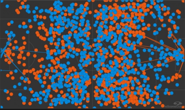 對比之下,馬競的足球哲學則更加偏向于在穩(wěn)定防守后,完成的中路控制及推進保障,這通過他們傳遞的路線圖也能夠看出,中場的銜接對馬競來說可是太重要了,能不能順暢的過了中線,將會決定他們接下來向前推進的效率。對此,后腰的作用格外重要。