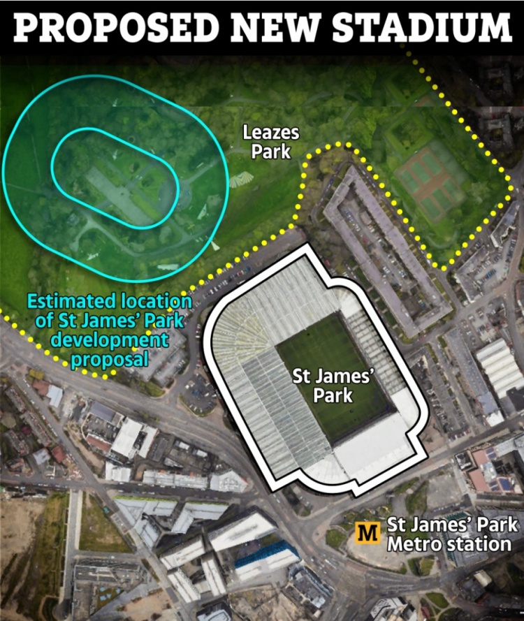太陽報:紐卡計劃建造容納65000人新球場,預(yù)測耗資約30億鎊