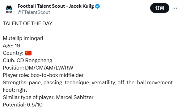 03月19日訊 王鈺棟昨日登上全球球探網(wǎng)站Football Talent Scout“今日天才”板塊,據(jù)博主“朗尼克”介紹,這是過去十年間第二個(gè)登上這個(gè)網(wǎng)站的中國球員。比王鈺棟更早登上Football Talent Scout的是蓉城青訓(xùn)出身的木塔力甫。
