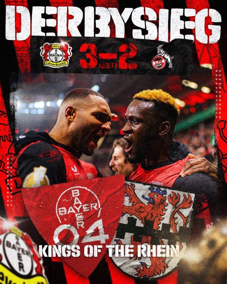 勒沃庫森加時賽3-2逆轉(zhuǎn)擊敗科隆,晉級德國杯四強。
