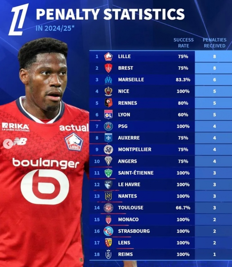 本賽季五大聯(lián)賽獲得點球情況:皇馬10球、拜仁9球、利物浦6球