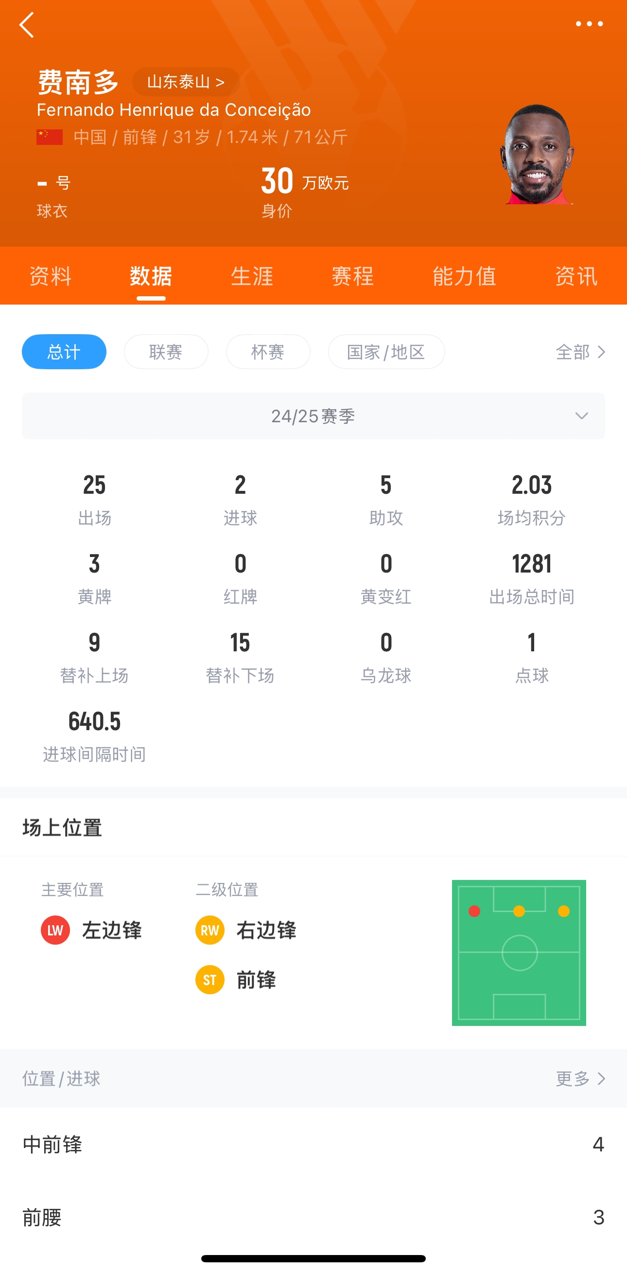 費(fèi)南多上賽季二次轉(zhuǎn)會(huì)從泰山隊(duì)租借加盟申花,代表申花出戰(zhàn)10場(chǎng)中超聯(lián)賽,貢獻(xiàn)了1個(gè)進(jìn)球和2次助攻。他在去年12月4日代表申花踢完了最后一場(chǎng)比賽,隨后就返回了巴西。目前費(fèi)南多和泰山之間的兩年合同已經(jīng)到期,和申花的半賽季租借合同也到期,現(xiàn)在已成為完全自由球員。