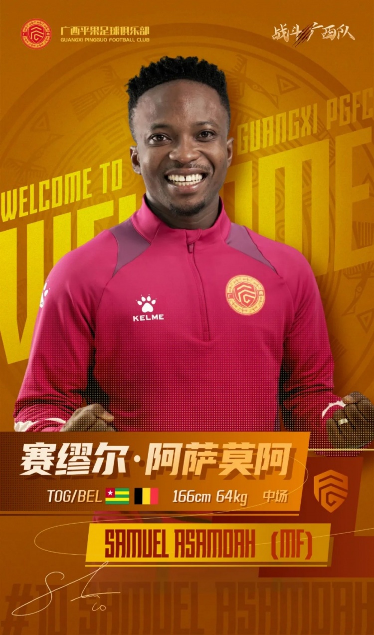 新賽季,新形象,新征程!歡迎塞繆爾·阿薩莫阿加盟廣西平果足球俱樂(lè)部,2025賽季,愿我們一起攜手并進(jìn),發(fā)揮出色的表現(xiàn),為廣西而戰(zhàn)!