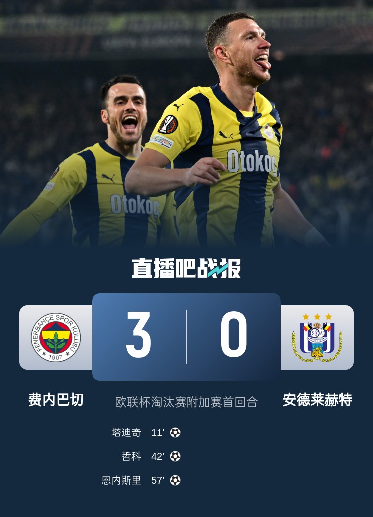 塔迪奇、哲科、恩內(nèi)斯里,費(fèi)內(nèi)巴切3-0完勝安德萊赫特。