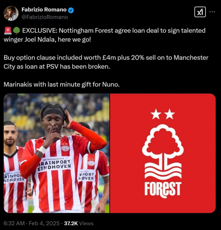 記者:熱刺租借特爾達(dá)成全面協(xié)議,選擇買斷費(fèi)用5500萬歐元 2月4日訊 據(jù)知名記者David Ornstein透露,熱刺租借特爾達(dá)成全面協(xié)議,選擇買斷費(fèi)用5500萬歐元。David Ornstein指出,熱刺租借拜仁前鋒特爾已達(dá)成全面協(xié)議,租借期限到本賽季結(jié)束 2025/02/04 圖片報:諾伊爾新合同和表現(xiàn)掛鉤,努貝爾被外租并未受到影響 2月4日訊 拜仁已經(jīng)官宣和老將諾伊爾續(xù)約至2026年,《圖片報》透露了細(xì)節(jié)內(nèi)容。該媒體指出,諾伊爾簽下的新合同在很大程度上和表現(xiàn)掛鉤。他上一份合同年薪2000萬歐元,考慮到他已經(jīng)承諾將為年輕門將烏爾比 2025/02/04 西媒:佛羅倫薩向瓦倫西亞報價拉法-米爾,并對轉(zhuǎn)會成行保持樂觀 2月4日訊 據(jù)西班牙記者M(jìn)atteo Moretto和西媒Relevo消息,佛羅倫薩正全力引進(jìn)瓦倫西亞前鋒拉法-米爾。據(jù)悉,最初瓦倫西亞一度拒絕球員離隊(duì),但佛羅倫薩在向蝙蝠軍團(tuán)提交正式報價后,目前雙方 2025/02/04 羅馬諾:阿穆古已與切爾西簽約,轉(zhuǎn)會費(fèi)1500萬歐+轉(zhuǎn)售分成條款 2月4日訊 據(jù)知名記者羅馬諾的消息,阿穆古已經(jīng)與切爾西簽下合同,轉(zhuǎn)會費(fèi)1500萬歐元。羅馬諾指出,切爾西簽下圣埃蒂安19歲中場阿穆古,球員剛剛與藍(lán)軍簽下了合同,兩家俱樂部也已經(jīng)簽署了所有的交易文件。阿 2025/02/04 波特:我們今天的表現(xiàn)有很多值得肯定的地方 內(nèi)托進(jìn)球前像犯規(guī) 2月4日訊 今天凌晨,西漢姆在英超聯(lián)賽中1-2遭到切爾西逆轉(zhuǎn),球隊(duì)主帥波特在賽后接受了天空體育采訪。波特說道:“球隊(duì)展現(xiàn)出來的精神面貌很好,我們拼盡了全力,在機(jī)會方面,兩隊(duì)其實(shí)差不多,但就結(jié)果而言,我 2025/02/04 那不勒斯官方:租借米蘭24歲前鋒奧卡福半賽季,可選擇買斷 2月4日訊 那不勒斯官方宣布,從米蘭租借引進(jìn)24歲前鋒奧卡福。那不勒斯透露,奧卡福租借合同今夏到期,合同中含有選擇性買斷條款。那不勒斯并未透露合同細(xì)節(jié),但此前消息,奧卡福的租借費(fèi)200萬歐、選擇性買斷 2025/02/04 HWG!羅馬諾:森林租曼城18歲邊鋒恩達(dá)拉,買斷費(fèi)400萬鎊&20%二轉(zhuǎn) 2月4日訊 羅馬諾用標(biāo)志性的here we go 確認(rèn),森林將租借18歲曼城邊鋒恩達(dá)拉,球員在埃因霍溫的租期提前結(jié)束。同時,球員合同中包含400萬英鎊的選擇性買斷條款,曼城還將獲得20%的二次轉(zhuǎn)會分成 2025/02/04 C羅談金球獎:毫無可信度,維尼修斯該得獎,我多次有這種感受 02月04日訊 C羅接受了第六電視臺愛德華多-阿吉雷專訪,談到了金球獎的話題。C羅:金球獎毫無可信度,維尼修斯應(yīng)該獲獎。我多次有過這種感受我感到憤怒,隨著時間的推移我明白了,這些就是你無法贏得的戰(zhàn)斗。 2025/02/04 馬雷斯卡:西漢姆10人在防守我們得耐心 不擔(dān)心失誤過多的問題 2月4日訊 今天凌晨,切爾西在英超聯(lián)賽主場2-1逆轉(zhuǎn)擊敗西漢姆,馬雷斯卡賽后接受了BBC體育采訪。馬雷斯卡說道:“今天的比賽很艱難,尤其是在精神上和心理上。當(dāng)西漢姆聯(lián)來到這里,10名球員堆積在后方防守 2025/02/04 官方:伯恩茅斯簽下18歲前鋒克魯皮,據(jù)悉轉(zhuǎn)會費(fèi)1200萬歐+浮動 2月4日訊 伯恩茅斯官方宣布,球隊(duì)簽下洛里昂18歲前鋒克魯皮。伯恩茅斯發(fā)布官方公告,確認(rèn)永久簽下克魯皮,并將球員租回洛里昂,租借期限到本賽季結(jié)束。據(jù)知名記者羅馬諾的消息,克魯皮的轉(zhuǎn)會費(fèi)為1200萬歐加 2025/02/04 羅馬諾:森林將租借恩達(dá)拉,附帶400萬歐+20%二轉(zhuǎn)分成買斷條款 2月4日訊 據(jù)名記羅馬諾消息,森林接近簽下18歲英格蘭前鋒恩達(dá)拉,球員目前被曼城U21租借到埃因霍溫B隊(duì)效力。羅馬諾在社媒寫道:“獨(dú)家消息:諾丁漢森林同意以租借方式簽下天才邊路球員喬爾-恩達(dá)拉,HWG 2025/02/04 迪馬濟(jì)奧:那不勒斯150萬歐元租借奧卡福,選擇買斷費(fèi)2350萬歐 2月4日訊 那不勒斯官方宣布從米蘭租借奧卡福,而迪馬濟(jì)奧透露了轉(zhuǎn)會細(xì)節(jié)。迪馬濟(jì)奧表示,奧卡福被租借至那不勒斯至本賽季結(jié)束,租借費(fèi)為150萬歐元,而那不勒斯還擁有奧卡福的選擇買斷權(quán),買斷費(fèi)2350萬歐元 2025/02/04 C羅:貝林讓我想起齊達(dá)內(nèi) 維尼修斯配得上金球獎 2月4日訊 日前,C羅接受了西班牙六臺記者愛德華多-阿吉雷專訪,并談到了貝林厄姆和維尼修斯。C羅說道:“我很喜歡貝林厄姆,他讓我想起了齊達(dá)內(nèi),他有齊達(dá)內(nèi)的一些觸球。貝林厄姆非常年輕,他的未來一片光明, 2025/02/04 官方:利物浦20歲邊鋒凱德-戈登租借加盟樸茨茅斯,租期半賽季 2月4日訊 樸茨茅斯官方宣布,俱樂部從利物浦租借20歲邊鋒凱德-戈登,租期至本賽季結(jié)束。凱德-戈登主要司職右邊鋒,也可以客串右中場。截至目前,這名20歲小將代表紅軍一線隊(duì)出場了7次,打進(jìn)1球,出場時間 2025/02/04 莫雷托:索蒂爾以略低于100萬歐的租借費(fèi)加盟米蘭,買斷費(fèi)1100萬 2月4日訊 據(jù)莫雷托報道稱,索蒂爾租借加盟米蘭的租借費(fèi)略低于100萬歐,買斷費(fèi)1100萬歐。米蘭已經(jīng)敲定佛羅倫薩邊鋒索蒂爾,這名球員將以租借+選擇性買斷的形式加盟米蘭。據(jù)報道稱,米蘭將會支付一筆略低于 2025/02/