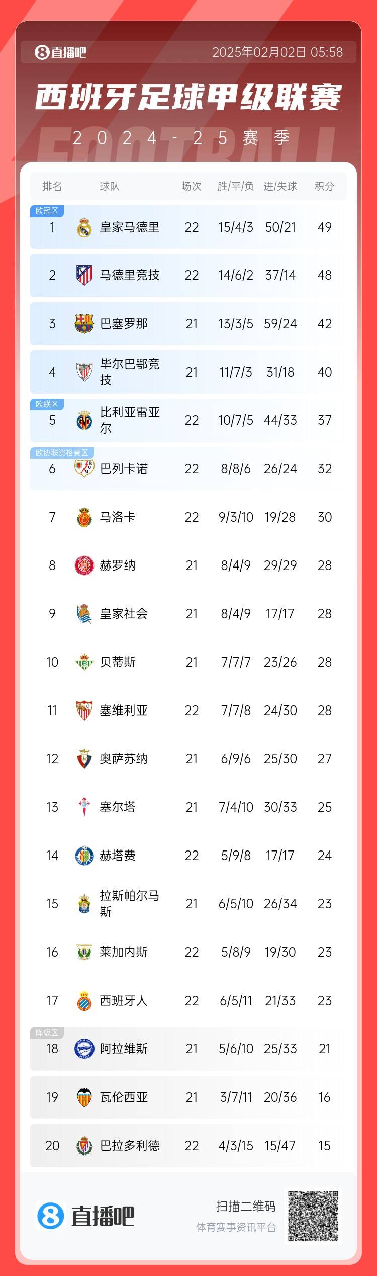 羅馬諾:曼城不想掏6000萬(wàn)歐解約金簽岡薩雷斯,在談4000萬(wàn)轉(zhuǎn)會(huì)費(fèi) 2月2日訊 此前羅馬諾獨(dú)家報(bào)道,曼城有意波爾圖中場(chǎng)岡薩雷斯。據(jù)羅馬諾跟進(jìn),當(dāng)?shù)貢r(shí)間本周六,曼城、波爾圖以及岡薩雷斯的經(jīng)紀(jì)人仍然在進(jìn)行談判。曼城目前并不想觸發(fā)岡薩雷斯合同中6000萬(wàn)歐的解約金條款,希望 2025/02/02 莫耶斯:現(xiàn)在我們的感覺比前幾周要好,要確保能完成保級(jí) 2月2日訊 英超第25輪,埃弗頓4-0戰(zhàn)勝萊斯特城。賽后埃弗頓主帥莫耶斯接受了采訪。莫耶斯說(shuō)道:“現(xiàn)在我們的感覺比前幾周要更好,球員們又一次踢出了優(yōu)秀的表現(xiàn),值得稱贊,很高興看到他們?nèi)〉昧诉M(jìn)步?!薄爱?dāng) 2025/02/02 拜仁高層:若特爾離隊(duì),我們也不準(zhǔn)備簽下另一名替代者 2月2日訊 拜仁在本輪德甲4-3險(xiǎn)勝基爾,深陷轉(zhuǎn)會(huì)傳聞的小將特爾并未進(jìn)入比賽名單。高層弗羅因德在接受采訪時(shí)被問及“如果特爾離隊(duì),拜仁是否會(huì)再引進(jìn)一名替代者人選”,他對(duì)此回答:“不會(huì),這不在我們的計(jì)劃之 2025/02/02 尤文對(duì)陣恩波利大名單:新援維加入選,DV9在列,坎比亞索缺戰(zhàn) 2月2日訊 北京時(shí)間今晚19:30,尤文將在主場(chǎng)對(duì)陣恩波利。賽前,尤文官方公布了將出戰(zhàn)本場(chǎng)比賽的大名單。由于正值蛇年春節(jié),尤文還特地在名單中用了漢字。在尤文的大名單中,新援維加入選,穆阿尼、弗拉霍維奇 2025/02/02 巴黎已連續(xù)34場(chǎng)聯(lián)賽客場(chǎng)不敗,五大聯(lián)賽歷史第2長(zhǎng)&米蘭38場(chǎng)第1 2月2日訊 法甲第20輪比賽中,巴黎5-2擊敗布雷斯特,登貝萊戴帽,貢薩洛-拉莫斯雙響。據(jù)統(tǒng)計(jì),在近34場(chǎng)法甲客場(chǎng)比賽中,巴黎均保持不敗,戰(zhàn)績(jī)?yōu)?6勝8平。這是五大聯(lián)賽歷史上第二長(zhǎng)的客場(chǎng)不敗紀(jì)錄。目前 2025/02/02 真不續(xù)約?29歲基米希已為拜仁連續(xù)首發(fā)50場(chǎng),本賽季沒缺席1分鐘 2月2日訊 拜仁在本輪德甲4-3險(xiǎn)勝基爾,基米希首發(fā)踢滿全場(chǎng)。數(shù)據(jù)統(tǒng)計(jì)顯示,基米希已經(jīng)為拜仁連續(xù)首發(fā)出戰(zhàn)了50場(chǎng)比賽,他本賽季更是沒有缺席哪怕1分鐘。29歲的基米希本賽季為拜仁出戰(zhàn)31場(chǎng)比賽,共計(jì)27 2025/02/02 希門尼斯:AC米蘭是一家非常偉大的球隊(duì) 向球迷們送上問候和擁抱 2月2日訊 米蘭新援圣地亞哥-希門尼斯已經(jīng)抵達(dá)意大利,他也在第一時(shí)間接受采訪談及相關(guān)話題?!獮槭裁催x擇AC米蘭?這是一家非常偉大的球隊(duì)?!獙?duì)球迷們的問候我很高興。我要向米蘭球迷們送上問候和擁抱并祝 2025/02/02 西甲積分榜:馬競(jìng)先賽1場(chǎng)距榜首1分 巴薩落后皇馬7分位居第三 2月2日訊 西甲聯(lián)賽第22輪,馬競(jìng)2-0馬洛卡,先賽距榜首1分。最新西甲積分榜↓ 2025/02/02 凱恩社媒紀(jì)念勝利:最后時(shí)刻有些緊張,但還是贏了! 2月2日訊 拜仁在本輪德甲4-3險(xiǎn)勝基爾,凱恩在本場(chǎng)比賽梅開二度。他也在賽后通過(guò)社媒曬出自己進(jìn)球后的慶祝照,并配文:“最后時(shí)刻有些緊張,但我們還是完成了任務(wù)。3分到手,又一場(chǎng)主場(chǎng)勝利?!眲P恩在本場(chǎng)比賽 2025/02/02 記者:弗拉門戈高層和阿爾特塔會(huì)面,希望說(shuō)服他放若日尼奧離隊(duì) 2月2日訊 據(jù)巴西記者Vene Casagrande報(bào)道,當(dāng)?shù)貢r(shí)間本周六,弗拉門戈的技術(shù)總監(jiān)何塞-博托將與阿爾特塔會(huì)面,希望說(shuō)服他在冬窗放走若日尼奧。若日尼奧的經(jīng)紀(jì)人正在等待了解雙方溝通的結(jié)果,從而確 2025/02/02 27歲開竅?登貝萊去年為巴黎42場(chǎng)進(jìn)13球,今年7場(chǎng)已11球 2月2日訊 巴黎在本輪法甲5-2擊敗布雷斯特,登貝萊連場(chǎng)戴帽。數(shù)據(jù)統(tǒng)計(jì)顯示,登貝萊在去年為巴黎各項(xiàng)賽事42場(chǎng)打進(jìn)13球,而今年僅用7場(chǎng)就已打進(jìn)11球。這位27歲的邊鋒本賽季各項(xiàng)賽事共計(jì)26場(chǎng),為巴黎貢 2025/02/02 利物浦英超連續(xù)14個(gè)客場(chǎng)不敗,隊(duì)史僅次于奪冠賽季的21場(chǎng) 2月2日訊 利物浦在本輪英超2-0客場(chǎng)力克伯恩茅斯,延續(xù)了本賽季的出色狀態(tài)。數(shù)據(jù)統(tǒng)計(jì)顯示,利物浦在英超最近連續(xù)14個(gè)客場(chǎng)保持不敗(9勝5平),隊(duì)史僅次于2019年1月到2020年2月的連續(xù)21場(chǎng)不敗。 2025/02/02 已通過(guò)體檢但被沙特放棄!博尼法斯:我現(xiàn)在專注于勒沃庫(kù)森 2月2日訊 利雅得勝利在本周以7700萬(wàn)歐元基礎(chǔ)轉(zhuǎn)會(huì)費(fèi)簽下維拉前鋒杜蘭,此前已經(jīng)達(dá)成協(xié)議并通過(guò)體檢的博尼法斯被放棄。后者也接受采訪談及相關(guān)話題?!D(zhuǎn)會(huì)傳聞這在足球界很常見,當(dāng)大俱樂部表現(xiàn)出興趣時(shí),我 2025/02/02 皇馬177戰(zhàn)西班牙人拿下108勝,是西甲對(duì)戰(zhàn)勝場(chǎng)紀(jì)錄之最 2月2日訊 皇馬在本輪西甲客戰(zhàn)西班牙人,數(shù)據(jù)統(tǒng)計(jì)顯示他們?cè)跉v史戰(zhàn)績(jī)層面占據(jù)壓倒性優(yōu)勢(shì)?;蜀R隊(duì)史共計(jì)在西甲177次對(duì)陣西班牙人,取得了108勝33平36負(fù)。108勝也是西